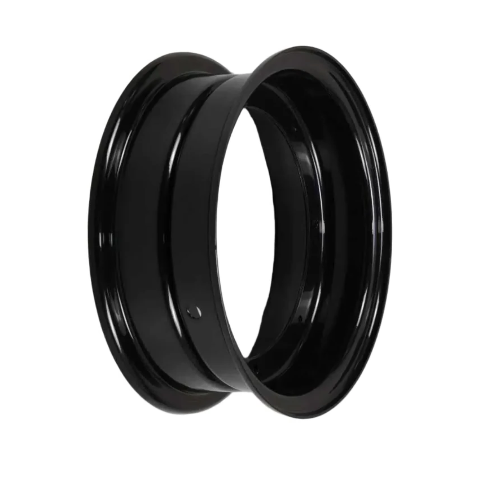 Jante en aluminium poli, adaptée pour le montage du moyeu Dax d'origine. Version en noir, livrée en ensemble complet avec tous les boulons et écrous nécessaires.