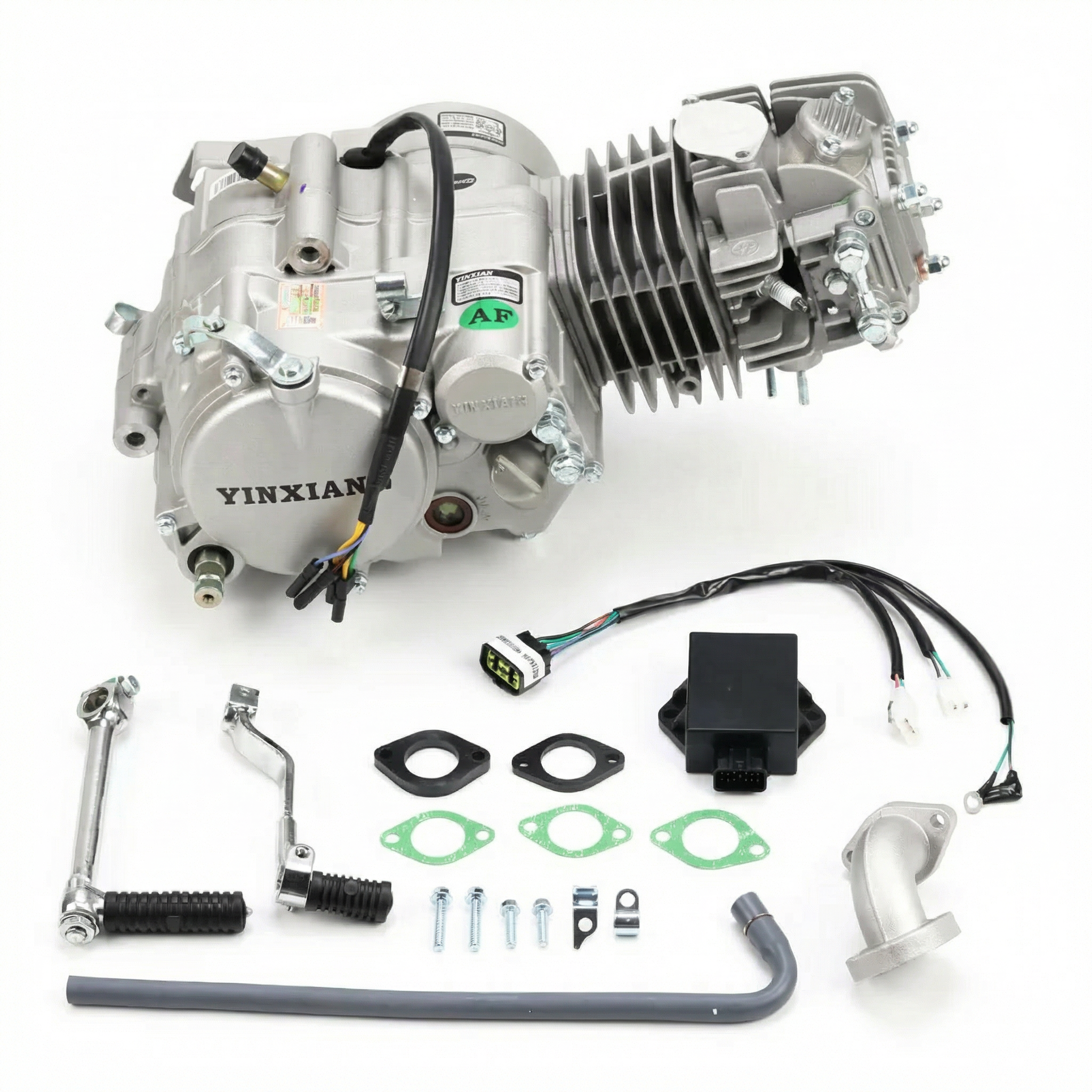 Le moteur est livré avec un allumage CDI, un collecteur, un kickstarter, un levier de changement de vitesse, une bougie, un pignon avant et du matériel de montage, pour une installation facile.