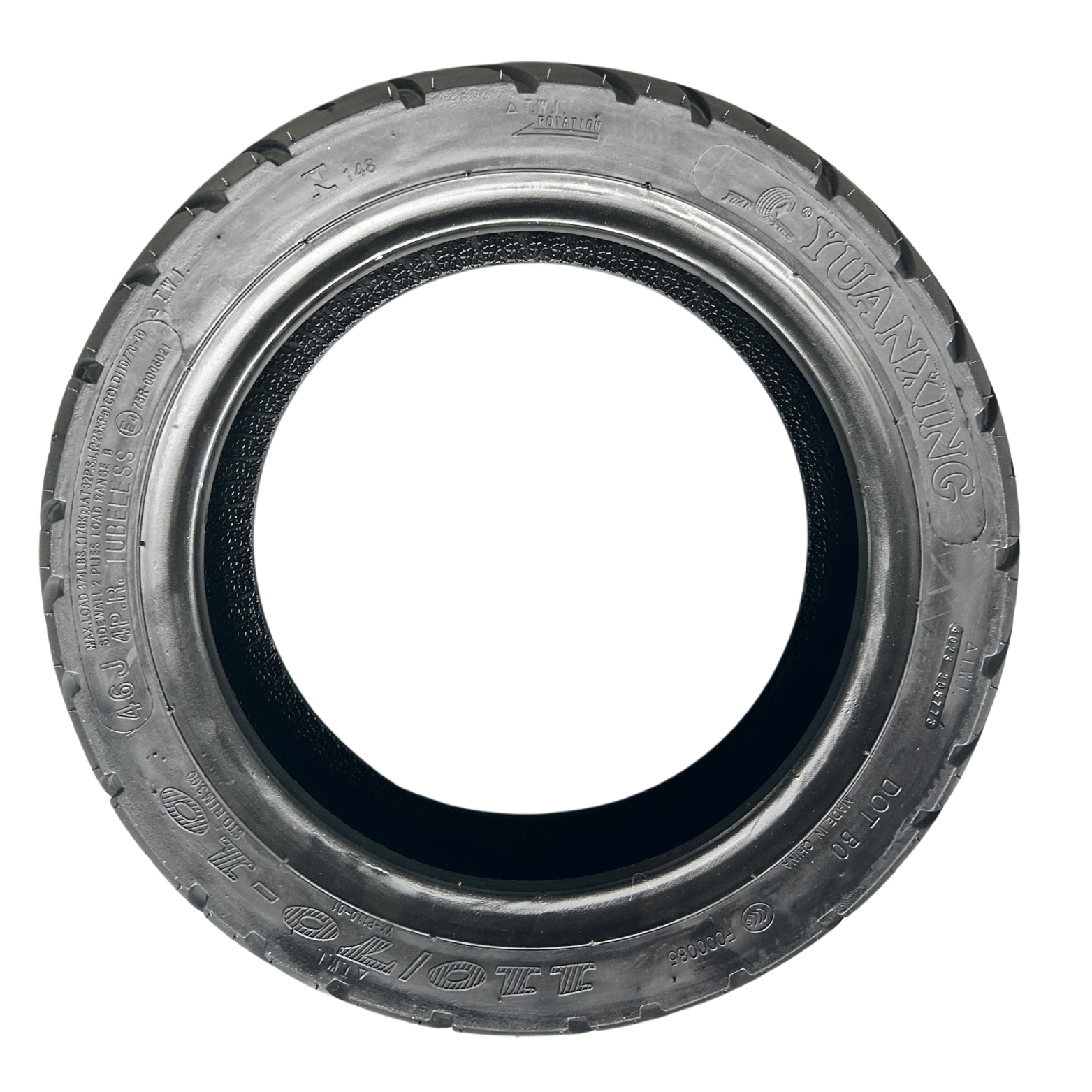 Un pneu extérieur avec un profil bas et large 113/60/10 et une chambre à air correspondante de 10 pouces.